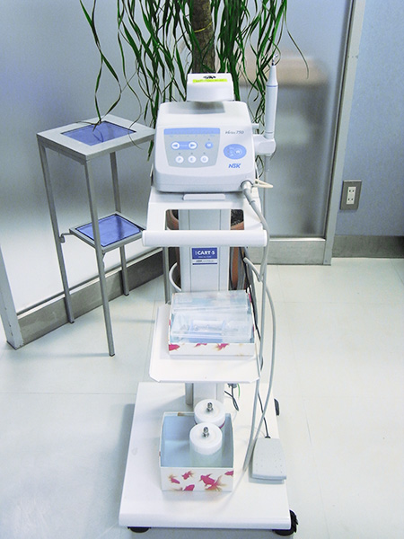 高濃度殺菌水をもちいて、歯周ポケット内のバイオフィルムの破壊を可能にした機械。